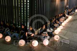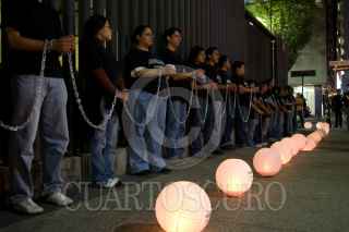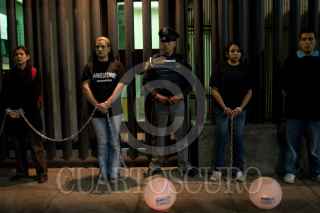 MÉXICO, D.F., 08DICIEMBRE2008.- Integrantes de Green peace se manifestaron afuera de la embajada de Japon ubicada en avenida Reforma en donde se encadenaron, para pedir la liberación de dos de sus compañeros sometidos a juicio por denunciar el tráfico de carne de ballena en ese país. FOTO: SÁSHENKA GUTIÉRREZ/CUARTOSCURO.COM