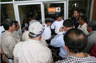 CHILPANCINGO, GUERRERO 08 DICIEMBRE2008.- de la protesta que realizaron trabajadores de la Secretaría de Salud en las instalaciones de dicha dependencia en la capital del estado, para exigir al secretario de Salud Luís Barrera Ríos, reinstale a los funcionarios, Rufino Silva Dominguez, director de Epidemiología y Medicina Preventiva, Francisco Robles Arce, jefe de programacion a la salud, e Israel Canche Aguilar, jefe del area de vectores en el estado, ya que aseguran fueron removidos de sus puestos por conflictos internos. FOTO: OSCAR ALVARADO/CUARTOSCURO.COM
