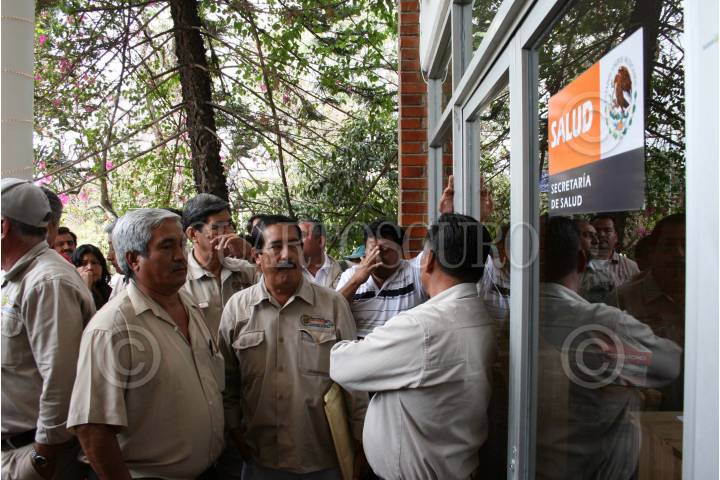 CHILPANCINGO, GUERRERO 08 DICIEMBRE2008.- de la protesta que realizaron trabajadores de la Secretaría de Salud en las instalaciones de dicha dependencia en la capital del estado, para exigir al secretario de Salud Luís Barrera Ríos, reinstale a los funcionarios, Rufino Silva Dominguez, director de Epidemiología y Medicina Preventiva, Francisco Robles Arce, jefe de programacion a la salud, e Israel Canche Aguilar, jefe del area de vectores en el estado, ya que aseguran fueron removidos de sus puestos por conflictos internos. FOTO: OSCAR ALVARADO/CUARTOSCURO.COM
