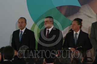 MÉXICO D.F., 09DICIEMBRE2008.- Felipe Calderon Hinojosa Presidente de México , Eduardo Medina Mora de la procuraduria general de la republica, Genaro García Luna Titular de la SSP presentacion del Programa Nacional de Rendición de cuentas , Transparencia y Combate a la corrupción 2008-2012. FOTO: SÁSHENKA GUTIÉRREZ/CUARTOSCURO.COM