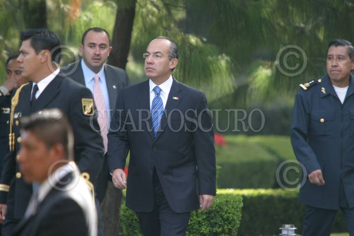 MÉXICO D.F., 09DICIEMBRE2008.- Felipe Calderon Hinojosa Presidente de México , Eduardo Medina Mora de la procuraduria general de la republica, Genaro García Luna Titular de la SSP presentacion del Programa Nacional de Rendición de cuentas , Transparencia y Combate a la corrupción 2008-2012. FOTO: SÁSHENKA GUTIÉRREZ/CUARTOSCURO.COM