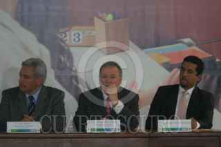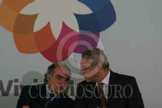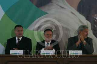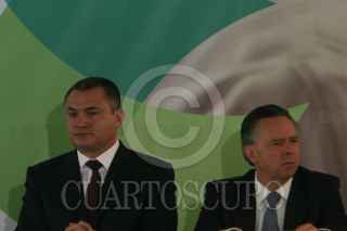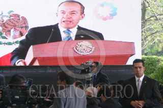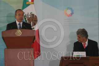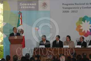 MÉXICO D.F., 09DICIEMBRE2008.- Salvador Vega Casillas Secretario de la Función Puública, Felipe Calderon Hinojosa conversan durante la presentacion del Programa Nacional de Rendición de cuentas , Transparencia y Combate a la corrupción 2008-2012, ceremonia encabezada por Felipe Calderon Presidente de México. FOTO: SÁSHENKA GUTIÉRREZ/CUARTOSCURO.COM