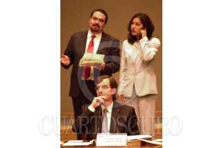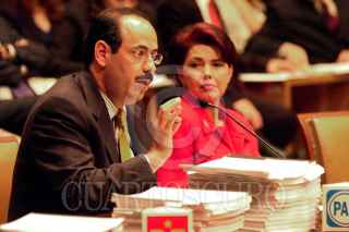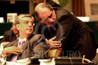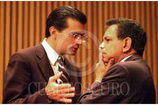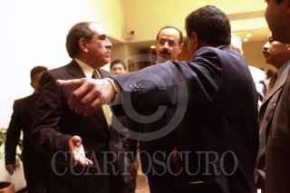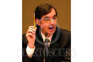 El consejero Jaime Cárdenas platica con el representante del PRD, Pablo Gómez, durante la sesión realizada por el Consejo General del IFE. Uno de los temas que se abordo en éste encuentro fue la condonación de multas a partidos políticos. FOTO: Victoria Valtierra/CUARTOSCURO.COM