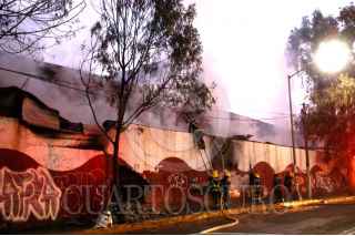 MÉXICO, D.F., 14DICIEMBRE2008.- Esta mañana se registro un incendio en una empresa de anaqueles metálicos, el siniestro se suscitó en la bodega en la que almacenaban pinturas y solventes, bomberos de la Delegación Azcapotzalco llegaron al lugar del incidente ubicado en Antiguo Camino a Guadalupe numero 99 H en la colonia San Marcos Azcapotzalco. FOTO: JULIETA MORA/CUARTOSCURO.COM