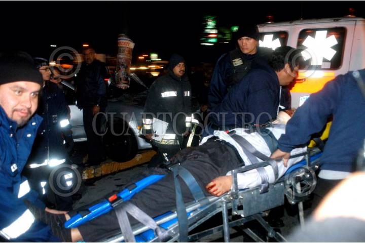 MÉXICO, D.F, 14DICIEMBRE2008.- Dos jovenes quedaron prensados entre los hierros retorcidos de su vehículo Jetta placas 254-VJY al impactarse contra un poste sobre periférico a la altura de la calle Adolfo López Mateos en la colonia Presidentes perímetro de la delegación Iztapalapa. Ambulancias especiales laboraron por mas de 40 minutos en el rescate de los jovenes que finalmente fueron trasladados a hospitales cercanos al lugar. FOTO: JULIETA MORA/CUARTOSCUROC.OM