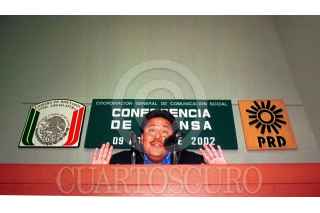 En rueda de prensa, Emilio Ulloa, diputado perredista, cuestionó al presidente Fox por no apoyar a los connacionales que emigran a los Estados Unidos. También habló sobre una carta que envió a Gerardo Vega García, secretario de la Defensa Nacional, por la grave inseguridad que afronta el municipio de Nezahualcóyotl, Estado de México, y por la amenaza de muerte que ha recibido Héctor Bautista, edil de esa entidad. FOTO: Oswaldo Ramírez/CUARTOSCURO.COM
