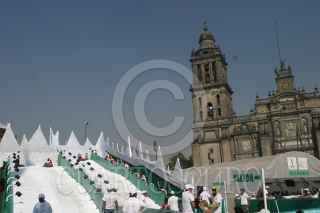 MÉXICO, D.F., 14DICIEMBRE2008.- Dentro de las principales actividades que se realizan en la pista de hielo mas grande del mundo se encuentra el tobogan y la hechura de muñecos de nieve. FOTO: SÁSHENKA GUTIÉRREZ/CUARTOSCURO.COM