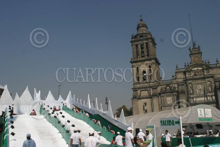 MÉXICO, D.F., 14DICIEMBRE2008.- Dentro de las principales actividades que se realizan en la pista de hielo mas grande del mundo se encuentra el tobogan y la hechura de muñecos de nieve. FOTO: SÁSHENKA GUTIÉRREZ/CUARTOSCURO.COM