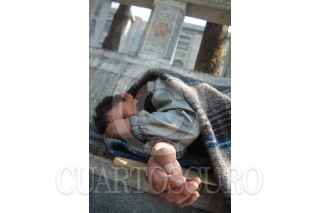 MÉXICO, D.F., 15 DE DICIEMBRE DE 2008.- La mayoría de los vagabundos que habitan las calles y callejones de esta ciudad, pasan las noches en vela, debido a la incapacidad de dormir a causa del frío; por lo cual encuentran el sueño bajo el calor del mediodia. FOTO: COSME RADA/CUARTOSCURO.COM