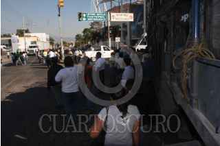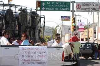 OAXACA, OAXACA 16DICIEMBRE2008.-Maestros disidentes de la sección 22 ahora sección 59, tomaron ayer por la tarde por espacio de 6 horas un bloqueo en el crucero de niños héroes, esto a manera de presión en exigencia del aguinaldo correspondiente y las prestaciones de ley, donde después de un acuerdo con autoridades y el secretario de gobierno del estado Manuel García Corpus se evito que se instalaran mañana en plantón. FOTO:MAX NUÑEZ/CUARTOSCURO.COM