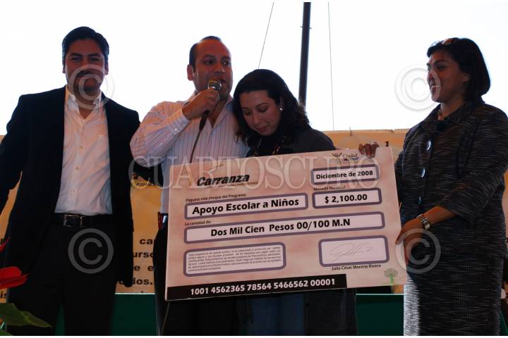 MÉXICO D.F.16DICIEMBRE208.- Julio César Moreno Rivera, jefe delegacional de Venustiano Carranza, esta mañana realizó la entrega de cheques con un valor de $2100.00 esto como parte del programa de Apoyo Escolar a Niños. FOTO: GUILLERMO PEREA/CUARTOSCURO.COM