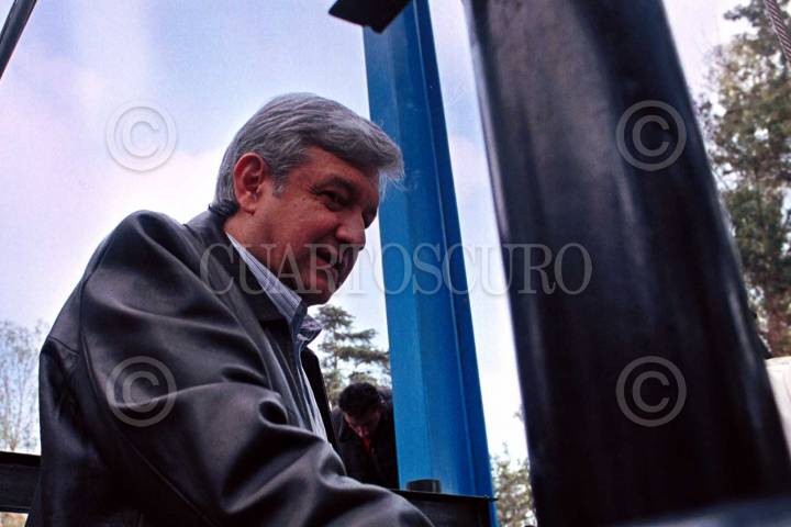Cesar Buen Rostro, secretario de obras públicas, Andrés Manuel López Obrador, jefe de gobierno capitalino y Juan Gonzalez Romero, delegado de Xochimilco durante la inauguración del colector y planta de bombeo de aguas pluviales en esta demarcación. FOTO: Susana Navarrete/CUARTOSCURO.COM