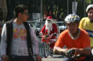 MÉXICO D.F., 21DICIEMBRE2008.- Cientos de personas acuden a la Avenida Paseo de la Reforma para salir con su bicicleta y ejercitarse, durante el programa denominado Ciclotón. En la imagen un una persona disfrazada de Santa Claus circula en su bicicleta. FOTO: GUILLERMO PEREA/CUARTOSCURO.COM