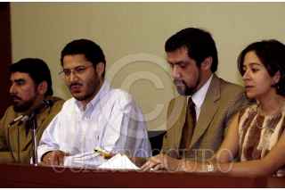 Gregorio Urias, Martí Batres, Rafael García y Miroslava García llegan a la conferencia de prensa donde dieron a conocer la agenda política legislativa del PRD, en la sala de prensa del recinto de San Lázaro. FOTO: Victoria Valtierra/CUARTOSCURO.COM