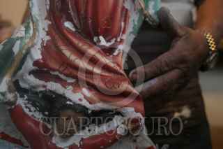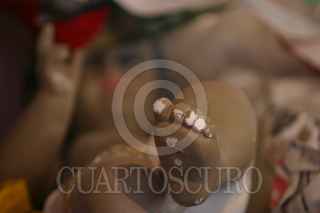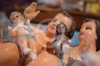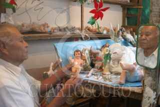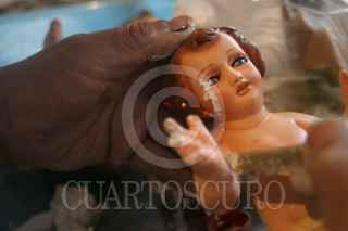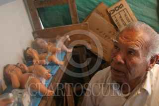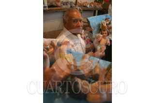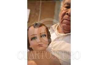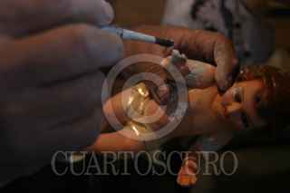 MÉXICO D.F., 22DICIEMBRE2008.- Morenos, claros, grandes y pequeños, de diversos tamaños son los niños dioses que para estas fechas esperan ser reparados por este hombre que también se hace llamar un cirujano de dios, ya que se encuentra rodeado de manos, dedos, y cuerpesitos en mal estado, donde este hombre con mas de 20 años de experiencia hace la reparacion de los niños dioses pues ya están en puerta las tradicional“arrullo”, donde la figura de Cristo en niño es el centro. FOTO: SÁSHENKA GUTIÉRREZ/CUARTOSCURO.COM