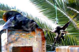 MÉXICO D.F., 22DICIEMBRE2008.- Un Halcón de raza Harris fue encontrado en lo alto de una palmera enredado en las calles Tesoro y Congreso de la Unión en la colonia Tres Estrellas perímetro de la Delegación Gustavo A. Madero. FOTO: JULIETA MORA/CUARTOSCURO.COM