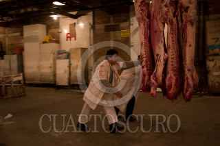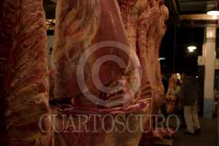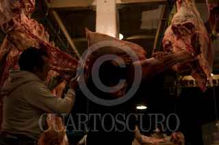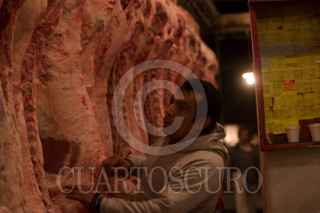MÉXICO D.F., 23DICIEMBRE2008.- Trabajadores del rastro de ferreria ubicado en la delegación Azcapotzalco, cortan bultos de carne desde tempranas horas de la madrugada, en donde se espera la llegada de cientos de visitantes para la compra de carne ya sea al mayoreo o menudeo para la elaboración de la cena de la noche de Navidad. FOTO:SÁSHENKA GUTIÉRREZ/CUARTOSCURO.COM