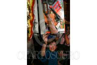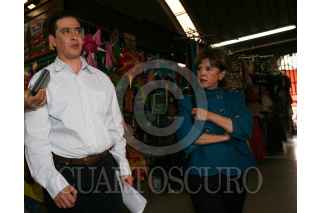 MÉXICO D.F., 23DICIEMBRE2008.- Los diputados locales del PAN, Carmen Segura Rangel y Agustín Castilla, acudieron esta tarde al mercado de Coyoacán, donde realizaron un recorrido por los locales donde se realiza la venta de juguetes bélicos. FOTO: GUILLERMO PEREA/CUARTOSCURO.COM