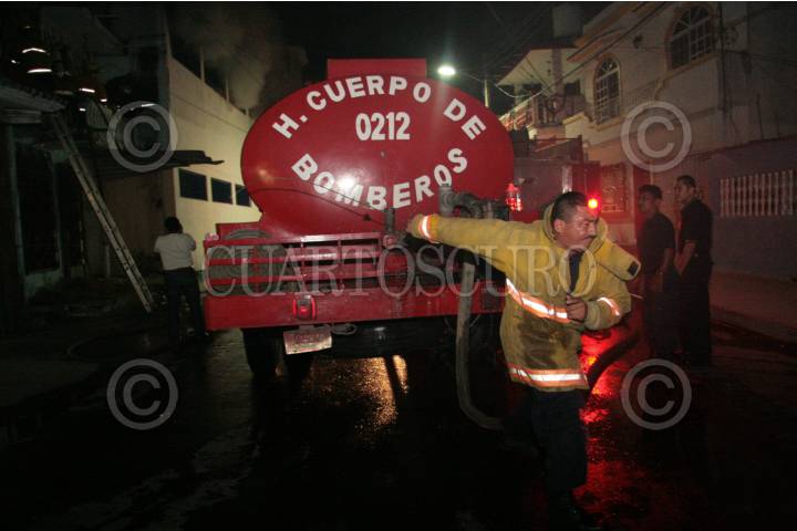 VILLAHERMOSA, TABASCO, 24DICIEMBRE2008.- Un petardo provocó un incendio en la bodega de maquinas donde se procesa hielo y agua purificada de la Victoria, en el lugar no se registro ninguna perdida de vida pero si daños materiales. A lo que elemento de bomberos y del ejercito militar acordonaron la zona. FOTO: MARCO POLO GUZMÁN HERNÁNDEZ/CUARTOSCURO.COM