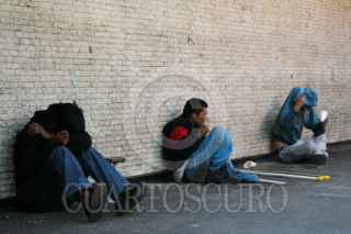 MÉXICO, D.F., 24DICIEMBRE2008.- En gran parte de la ciudad es comun ver a gente que vive en la calle, algunos de ellos son personas que desde niños se encuentran ahi por diversos problemas o por abandono y encuentran a las avenidas publicas como un lugar donde vivir, tambien entre los indigentes, la drogadiccion es una forma facil de escapar de la realidad en la que viven. FOTO: ENRIQUE ORDÓÑEZ/CUARTOSCURO.COM