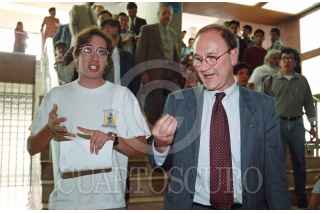 Enrique del Val discute con un estudiante al término de las negociaciones entre la Rectoría y el CGH en C.U.