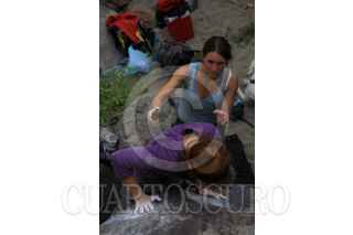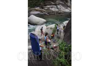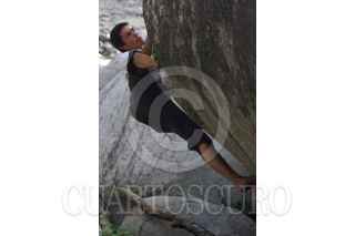 BOQUILLAS, CHIAPAS, 30DICIEMBRE2008.- Jóvenes de de Alemania, Guatemala y México participan en el festival “Toca la Roca”, junto al río Boquillas, al sur del estado en la frontera con Guatemala. En esta justa participan un grupo de 12 escaladores que muestra capacidad física y dominio de si mismo para lograr vender la dificultad de escalar las rocas. FOTO: COSME RADA/CUARTOSCURO.COM