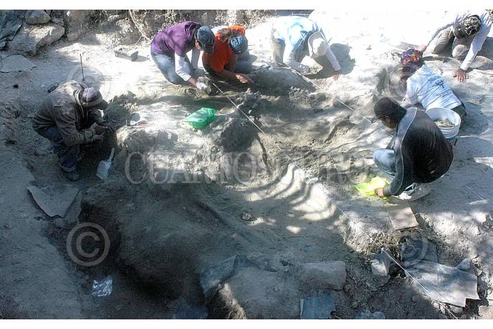 TECAMAC, ESTADO DE MÉXICO, 31DICIEMBRE2008.- En lo que seria un edificio, en las calles Boulevard Ojo de Agua y Duraznos en la colonia Ojo de Agua Municipio de Tecamac. Fueron encontrados los restos de al parecer un Mamut, por lo que comenzaron las labores de extracción por parte de trabajadores del Instituto Nacional de Antropología (INAH). FOTO: JULIETA MORA/CUARTOSCURO.COM