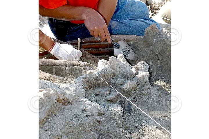 TECAMAC, ESTADO DE MÉXICO, 31DICIEMBRE2008.- En lo que seria un edificio, en las calles Boulevard Ojo de Agua y Duraznos en la colonia Ojo de Agua Municipio de Tecamac. Fueron encontrados los restos de al parecer un Mamut, por lo que comenzaron las labores de extracción por parte de trabajadores del Instituto Nacional de Antropología (INAH). FOTO: JULIETA MORA/CUARTOSCURO.COM