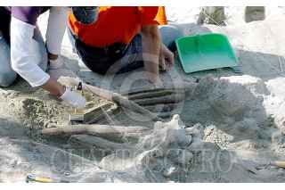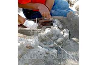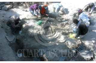 TECAMAC, ESTADO DE MÉXICO, 31DICIEMBRE2008.- En lo que seria un edificio, en las calles Boulevard Ojo de Agua y Duraznos en la colonia Ojo de Agua Municipio de Tecamac. Fueron encontrados los restos de al parecer un Mamut, por lo que comenzaron las labores de extracción por parte de trabajadores del Instituto Nacional de Antropología (INAH). FOTO: JULIETA MORA/CUARTOSCURO.COM