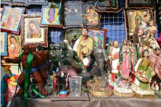 MÉXICO, D.F., 01ENERO2009.- Distintas imágenes son vendidas por comerciantes a lo largo de la entrada principal que conduce hacia la Basílica de Guadalupe. FOTO: RODOLFO ANGULO/CUARTOSCURO.COM
