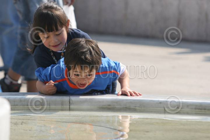 MÉXICO, D.F., 01ENERO2009.- Dos niños Juegan en una fuente de la explanada del Palacio de Bellas Artes. FOTO: RICARDO CASTELAN/CUARTOSCURO.COM