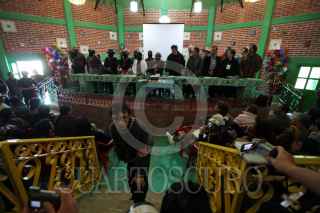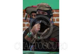 SAN CRISTOBAL DE LAS CASAS, CHIAPAS, 02ENERO2009.- El subcomandante Marcos durante la inauguración del primer Festival Internacional de la Digna Rabia del EZLN con una conferencia sobre liberación social con el tema: “Otro Mundo Otra Política”, en la que participaron miembros de movimientos sociales e ideológicos internacionales, también se contó con la presencia a manera de moderadores de comandantes del EZLN y con participaciones de intelectuales. FOTO: COSME RADA/ CUARTOSCURO.COM