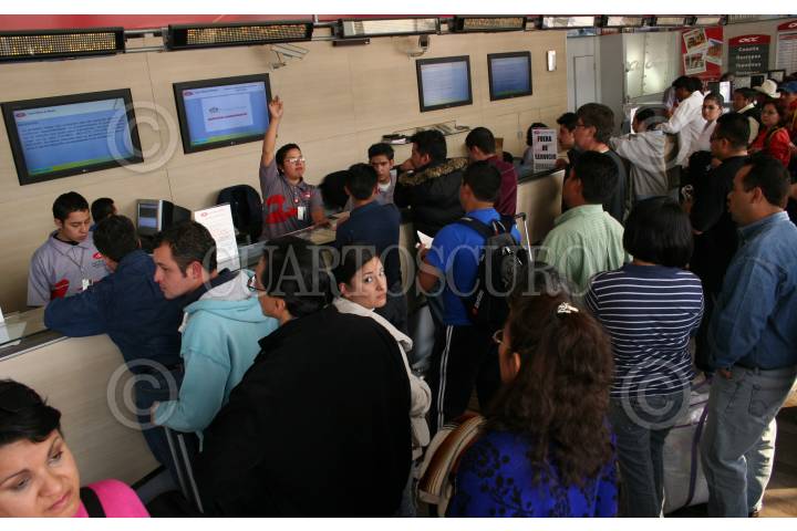 MÉXICO, D.F., 02ENERO2009.- Cientos de personas en busca de una corrida de autobus. Con esto continua la llegada y salida de visitantes y residentes de la Ciudad de México en la central camionera del Sur (Tasqueña), donde informó personal administrativo que el destino mas visitado en esta temporada vacional es Acapulco. FOTO: MISAEL VALTIERRA/CUARTOSCURO.COM