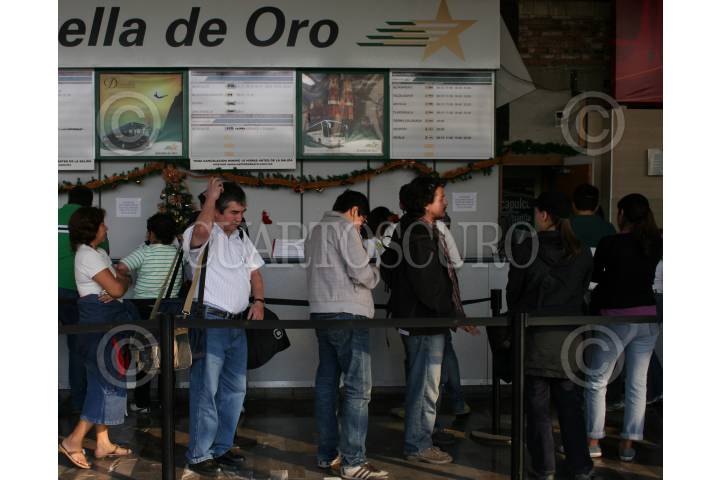 MÉXICO, D.F., 02ENERO2009.- Cientos de personas en busca de una corrida de autobus. Con esto continua la llegada y salida de visitantes y residentes de la Ciudad de México en la central camionera del Sur (Tasqueña), donde informó personal administrativo que el destino mas visitado en esta temporada vacional es Acapulco. FOTO: MISAEL VALTIERRA/CUARTOSCURO.COM