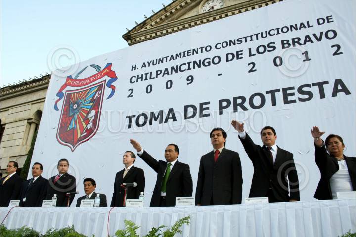 CHILPANCINGO, GUERRERO, 02ENERO2009.- En primer plano de la fila, Rene Juarez Cisneros, ex-gobernador de la entidad y tercero en la fila Manuel Añorve Baños, alcalde de Acapulco, durante la ceremonia de toma de protesta de Hector Astudillo Flores como alcalde de Chilpancingo en la plaza civica "Primer Congreso de Anahuac" de la capital del estado. FOTO: OSCAR ALVARADO/CUARTOSCURO.COM