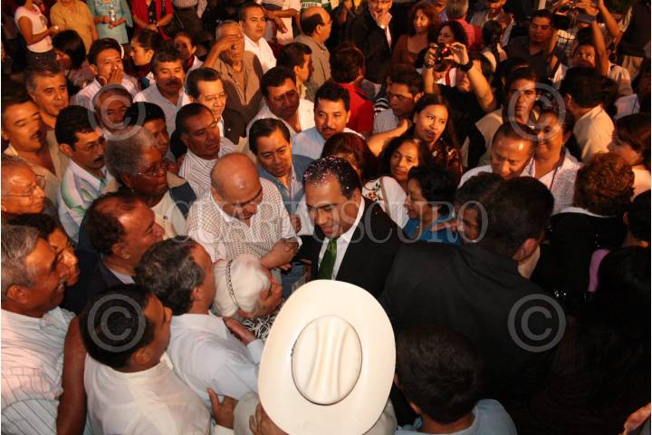 CHILPANCINGO, GUERRERO, 02ENERO2009.- En primer plano de la fila, Rene Juarez Cisneros, ex-gobernador de la entidad y tercero en la fila Manuel Añorve Baños, alcalde de Acapulco, durante la ceremonia de toma de protesta de Hector Astudillo Flores como alcalde de Chilpancingo en la plaza civica "Primer Congreso de Anahuac" de la capital del estado. FOTO: OSCAR ALVARADO/CUARTOSCURO.COM