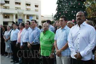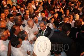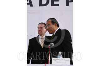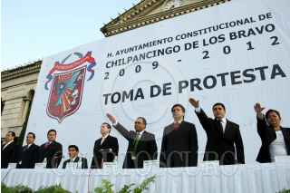 CHILPANCINGO, GUERRERO, 02ENERO2009.- En primer plano de la fila, Rene Juarez Cisneros, ex-gobernador de la entidad y tercero en la fila Manuel Añorve Baños, alcalde de Acapulco, durante la ceremonia de toma de protesta de Hector Astudillo Flores como alcalde de Chilpancingo en la plaza civica "Primer Congreso de Anahuac" de la capital del estado. FOTO: OSCAR ALVARADO/CUARTOSCURO.COM