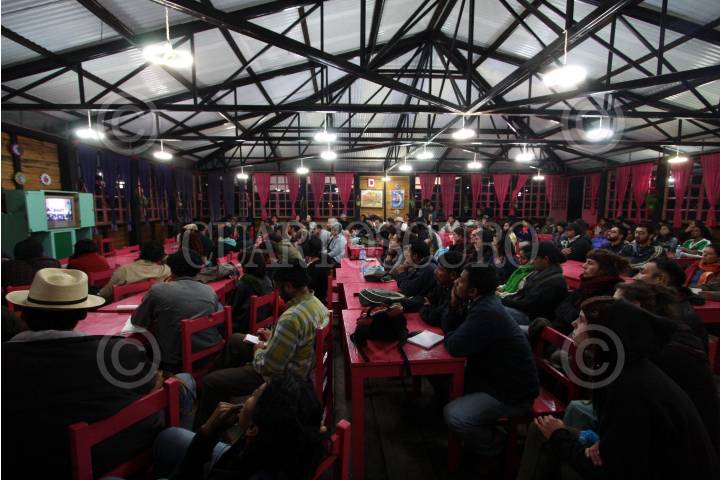 SAN CRISTOBAL DE LAS CASAS, CHIAPAS, 02ENERO2009.- Ante el sobrecupo en el auditorio del CIDECI, se tuvo que implementar una sala auxilia , que fue montada en el comedor de dicho complejo, con una televisión de 28 pulgadas para que los asistentes no perdieran detalle de las ponencias ahí efectuadas. FOTO: COSME RADA/CUARTOSCURO.COM