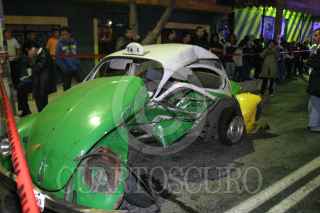 MÉXICO, D.F., 03ENERO2009.- Accidente automovilístico, en el cruce de Eje 3 Eduardo Molina y la Calle 306 de la Col. Nueva Atzacoalco en la GAM. Donde un automóvil Malibu de color gris iba a exceso de velocidad se impacto con un taxi VW P/A220900 con dos personas a bordo quienes salieron proyectados perdiendo la vida de forma instantánea, Uvaldo Rodríguez Ceferino de 52 años y su esposa Guadalupe Rodríguez Hernández de 42 años. FOTO: LUZ ACEVEDO/CUARTOSCURO.COM