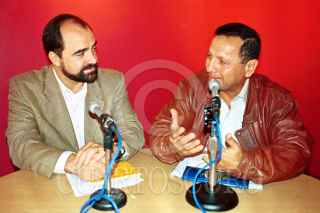 Emilio Alvarez Icaza, ombusman capitalino, y el general José Francisco Gallardo en entrevista durante el Festival de los medios comunitarios y ciudadanos en el Museo de Culturas Populares. FOTO: Susana Navarrete/CUARTOSCURO.COM