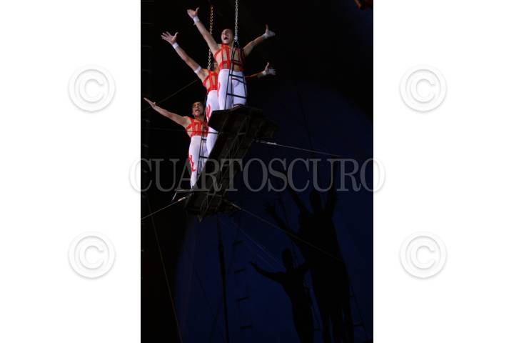 MÉXICO, D.F., 03ENERO2009.- Trapesistas preparados para el acto circense en el Circo mexicano Hermanos Vazquez, que celebró ayer por la noche la entrega de la medalla de Reconocimiento al Mérito Artístico Circense: Mario Moreno "Cantinflas", el cual artistas de varias disciplinas, fueron objeto de medallas de oro, plata y bronce, por su trabajo profesional dentro de la carpa. De igual manera mostraron el espectaculo visual que tiene este gran circo, con payasos, actos circences, así como la orquesta "Hermanos Vazquez". FOTO: MISAEL VALTIERRA/CUARTOSCURO.COM
