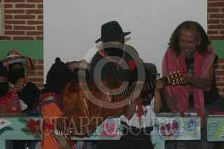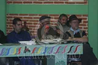 SAN CRISTOBAL DE LAS CASAS CHIAPAS 03ENERO2009.- Franz Illich, Rocco, cantante de la banda de rock "La Maldita Vecindad" y Hermann Bellinhausen, prediodista participan en la mesa "La Otra Cultura, La Otra Comunicacion" en el Primer Festival Mundial de La Digna Rabia quese celebra en la Universidad de la Tierra de esta ciudad. FOTO: MOYSES ZUÑIGA/CUARTOSCURO.COM