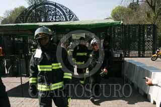 MÉXICO D.F. 07ENERO2009.- Integrantes del Cuerpo de Bomberos acudieron al Zoológico de Chapultepec a rescatar a un hombre que intento suicidarse arrojándose a la área donde se encontraba un tigre de bengala. FOTO: GUILLERMO PEREA/CUARTOSCURO.COM