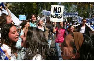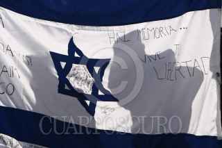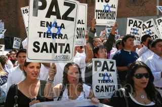 MÉXICO, D.F., 09ENERO2009.- Ciudadanos de origen israelí avencidados en nuestro país junto con simpatizantes organizaron un protesta pacífica en las afueras de la embajada de Israel en Lomas de Chapultepec, para pedir se termine el sitio de guerra que se vive en medio oriente después de que hace unas semanas se desato un conflicto bélico en la Franja de Gaza territorio que se disputa los judíos con la organización árabe Hamas. FOTO: MOISÉS PABLO/CUARTOSCURO.COM