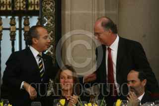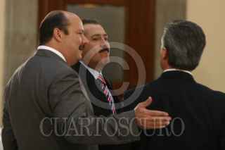 MÉXICO, D.F., 09ENERO2009.- El senador Manlio Fabio Beltrones conversa con César Duarte Presidente de la mesa Directiva de la Cámara de Diputados al término de la comida de trabajo con motivo de la XX reunión de embajadores y cosules de México realizada el salon tesoreria de Palacio Nacional. FOTO:SÁSHENKA GUTIÉRREZ/CUARTOSCURO.COM