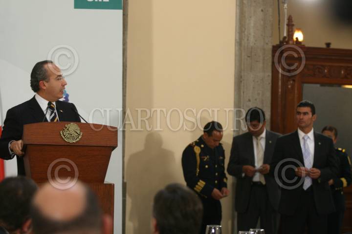 MÉXICO, D.F., 09ENERO2009.- El senador Manlio Fabio Beltrones conversa con César Duarte Presidente de la mesa Directiva de la Cámara de Diputados al término de la comida de trabajo con motivo de la XX reunión de embajadores y cosules de México realizada el salon tesoreria de Palacio Nacional. FOTO:SÁSHENKA GUTIÉRREZ/CUARTOSCURO.COM