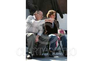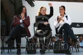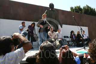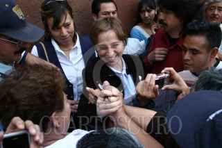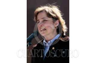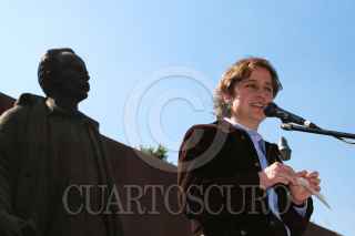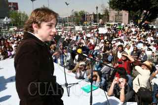 MÉXICO, D.F., 10ENERO2009.- Carmen Aristegui, encabezó un mitín en el monumento a José Martí en la Alameda Central, el encuentro fue con motivo de su regresó a la radio después de casi un año en el cual no le fuera renovado su contrato con la estación W Radio que pertenece a el grupo Radiopolis en el cual realizaba un programa de análisis político lo que muchos calificaron de un acto de censura. La periodista agradeció la presencia de sus amigos y simpatizantes que en todo momento la coreaban e invito a que la acompañen este lunes en la frecuencia de MVS Radio 102.5 de FM cuando inicie una nueva aventura radiofónica. FOTO: MOISÉS PABLO/CUARTOSCURO.COM