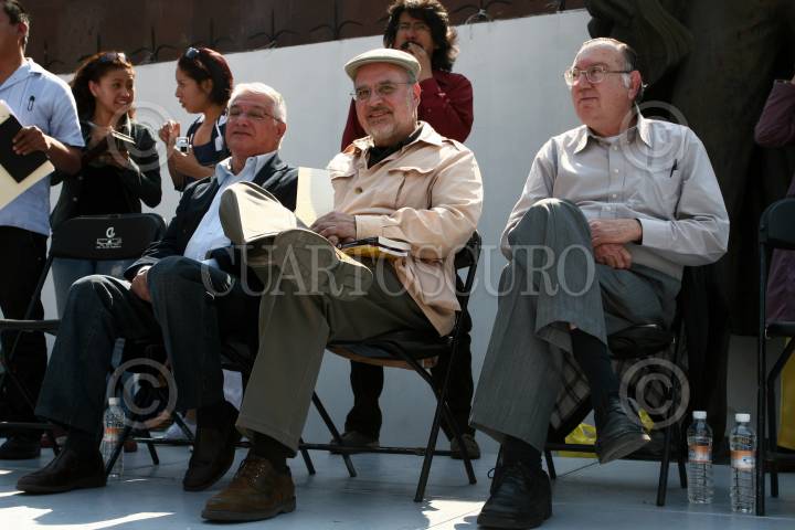 MÉXICO, D.F., 10ENERO2009.- Carmen Aristegui, encabezó un mitín en el monumento a José Martí en la Alameda Central, el encuentro fue con motivo de su regresó a la radio después de casi un año en el cual no le fuera renovado su contrato con la estación W Radio que pertenece a el grupo Radiopolis en el cual realizaba un programa de análisis político lo que muchos calificaron de un acto de censura. La periodista agradeció la presencia de sus amigos y simpatizantes que en todo momento la coreaban e invito a que la acompañen este lunes en la frecuencia de MVS Radio 102.5 de FM cuando inicie una nueva aventura radiofónica. FOTO: MOISÉS PABLO/CUARTOSCURO.COM