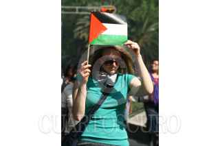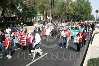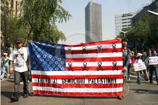 MÉXICO D.F., 10ENERO2009.- Cientos de personas marcharon desde el Hemiciclo a Juárez hasta la embajada de Estados Unidos donde se manifestaron a favor de un cese al fuego en la Franja de Gaza, por parte del ejército israelí. FOTO: SÁSHENKA GUTIÉRREZ/CUARTOSCURO.COM