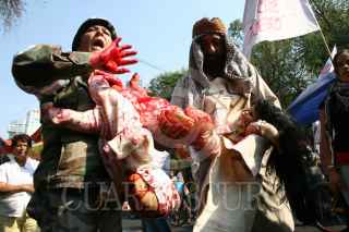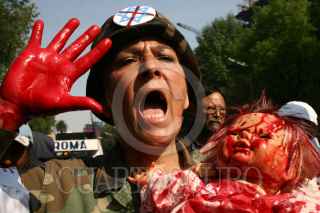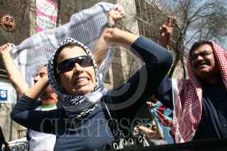 MÉXICO D.F., 10ENERO2009.- Cientos de personas marcharon desde el Hemiciclo a Juárez hasta la embajada de Estados Unidos donde se manifestaron a favor de un cese al fuego en la Franja de Gaza, por parte del ejército israelí. FOTO: SÁSHENKA GUTIÉRREZ/CUARTOSCURO.COM